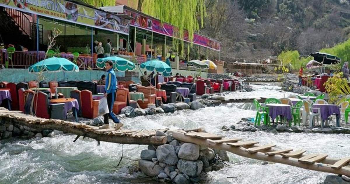 Marrakech excursion start by the small city of Tahanoute and our first beautiful valley, where you will be surprised by the contrast of many colors of its mountains. In Asni, we leave the main road to reach spectacular scenery, old Berber villages perched on the mountainside, and Sidi Faress Valley, (opportunity of walk). after we will completely change the view when wereach the Ourika valley, this valley is a paradise where the murmur of freshwater joined the rustling of leaves that adorn the mountain. Up there, what a view! we will discover small villages lost among the rocks and trees.valley about sixty kilometers from Marrakech, named of the river that runs through it. people engaged in farming terrace. Soon as there is some water, the valley is green. Apple trees, walnut, cherry, are grown, as well as many vegetables and grains. The contrast of bright green with red earth is striking! Breathtaking landscapes and incredible silent compared to the streets of Marrakech. Lunch will be served in the shade of trees, just to enjoy the song of the water! If you want to see the seven waterfalls closer, the guide can accompany you.End of our Marrakech excursion . Back to Marrakech around 5PM.