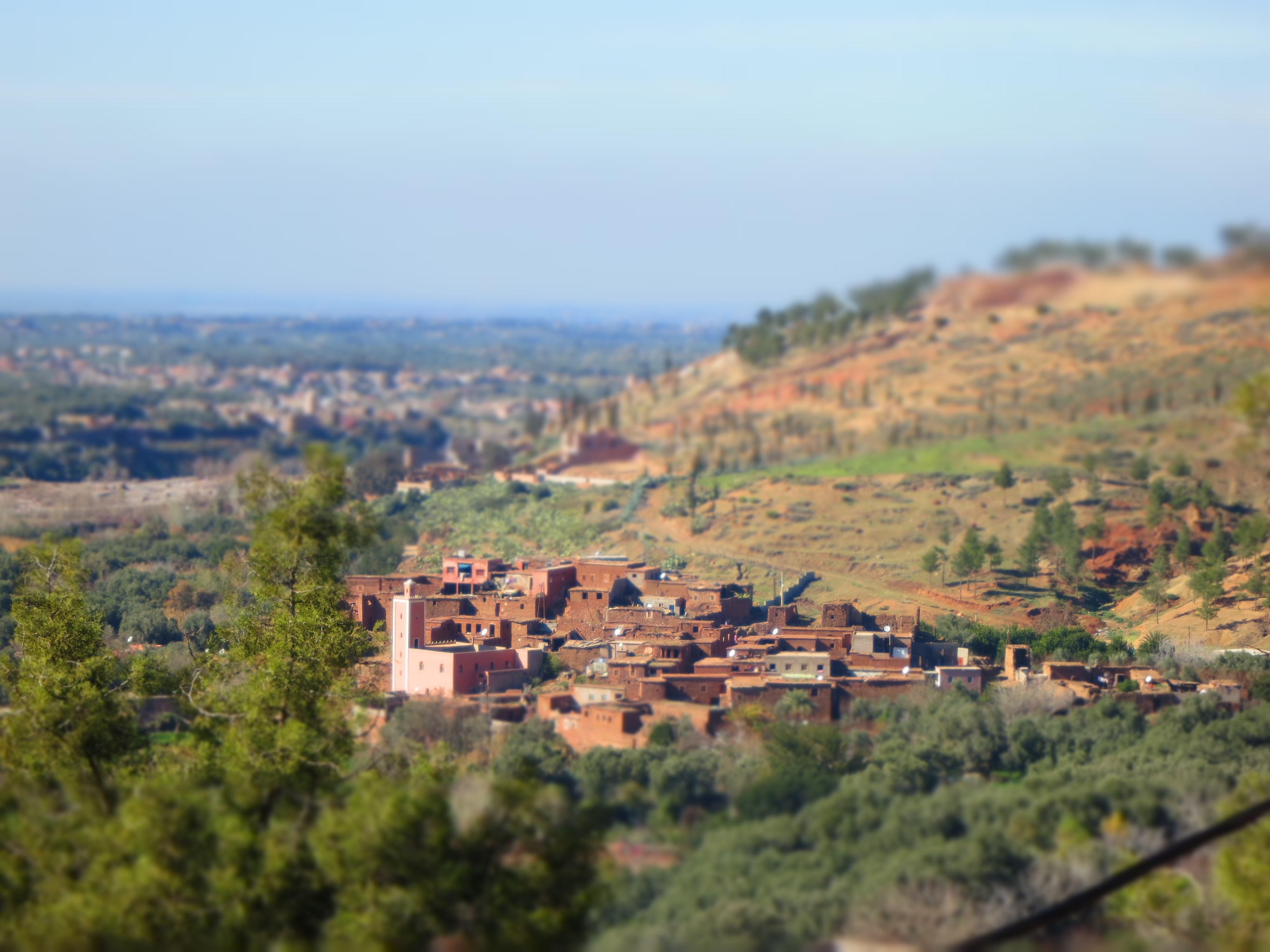 later, and after an hour, we will completely change the view to reach the Ourika valley, this valley is a paradise where the murmur of freshwater joined the rustling of leaves that adorn the mountain. Up there, what a view! we will discover small villages lost among the rocks and trees.valley about sixty kilometers from Marrakech, named of the river that runs through it. people engaged in farming terrace. Soon as there is some water, the valley is green. Apple trees, walnut, cherry, are grown, as well as many vegetables and grains. The contrast of bright green with red earth is striking! Breathtaking landscapes and incredible silent compared to the streets of Marrakech. Lunch will be served in the shade of trees, just to enjoy the song of the water! If you want to see the seven waterfalls closer, the guide can accompany you.End of our Marrakech excursion . Back to Marrakech around 5PM.